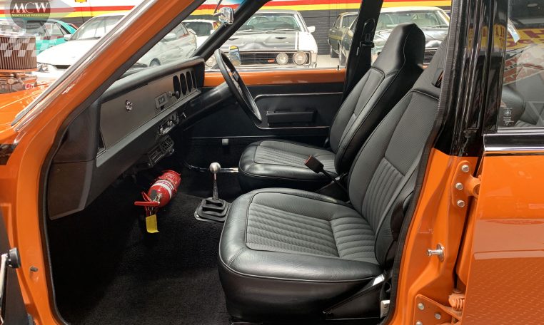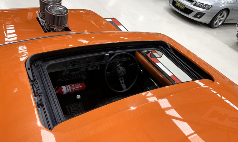 Now on offer is this 1974 Holden LH Torana which started life as a factory 6cylinder 4 door sedan in Safron Orange. The current owner has undertaken the process of a ground up restoration over a 5year period with no money spared and great attention to detail which the finish product presents in flawless condition as a modified L34 replica. Currently registered with a 350chev producing approx 390hp. Engine was newly built using a GM Vortec 4 bolt block, edelbrock alloy heads, SB roller cam, roller rockers, 450CFM carby, tunnel rams, Gilmore drive, electric thermo fans and the list goes on (receipts to match). Backed by a bullet proof drive train which consists of a 4-speed toploader gearbox and a hurst shifter to suit complemented with a 9inch diff LSD (4;11 ratio), Custom built extractors and exhaust, interior represents L34spec in immaculate condition. Exterior is painted in Safron orange with a custom metallic course which gives it a unique appeal with an extra option of a Customized electric sunroof fitted. Sits on 19’’ 3-piece FR Simmonds on disc brakes all round and rear air bag suspension set up to adjust ride height. Book an appointment now to view this beauty, located in our Kogarah facility.