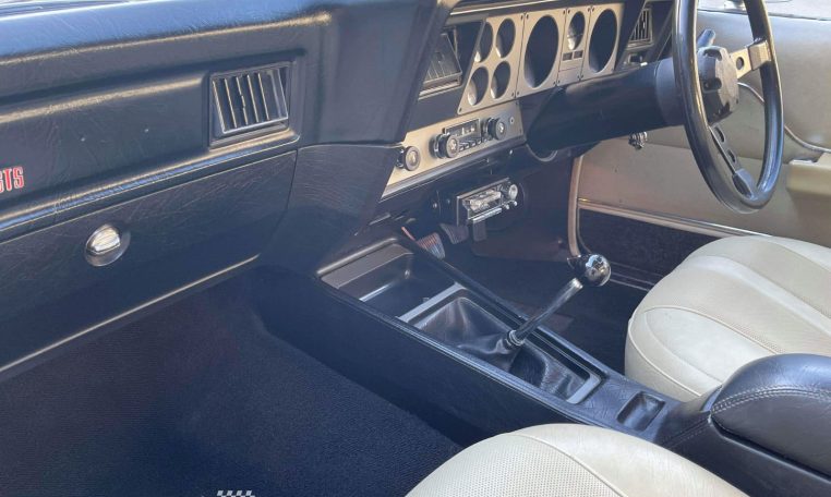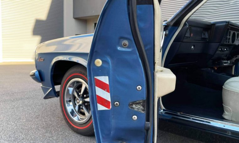 Up for sale is this cosmetically unrestored 1976 Holden HX GTS Monaro present in desirable Deauville Blue with White Chamois trim combination, running its matching numbers 253ci V8 under the bonnet backed by a M20 4 speed manual gearbox from factory in great mechanical order and a very reliable driver. With its gem day one interior being preserved in mint condition as has the exterior by its current fastidious owner for the past decade. With a close door re-spray 15years ago by the first owner this stunning example is classified as an unmolested rust-free example thanks to the 1st owner that ticked the box to have the vehicle treated for rust prevention from the Dealership by a company called (Tuff Kote protection services) back in 1976, Sold by Kevin Dennis Motors VIC. ridding on period correct GTS wheels with fresh red wall tyres and original spare wheel & jack, now showing 349,000km on the odometer this GTS retains all its original log books, manuals and paperwork, including its first issue registration certificate & rego plates with dealership number plate surround from new. Has also been featured in the Survivor Car Australia magazine as an excellent example of the last GTS Monaro’s that still survive today in this stunning condition. Now available to view at Muscle Car Warehouse.